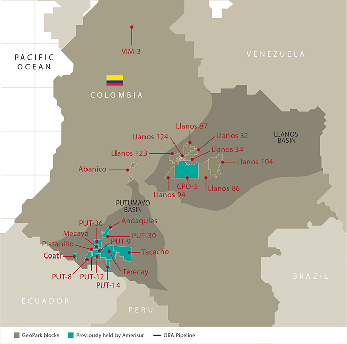 Through this transaction, GeoPark incorporates 13 production, development and exploration blocks in Colombia covering 2.7 million gross acres, a successful operating team, and the Oleoducto Binacional Amerisur, an export oil pipeline from Colombia to Ecuador.